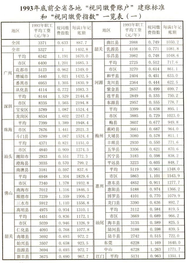關于貫徹國務院完善企業職工基本 養老保險制度決定的通知 各地級以上市人民政府,各縣(市、區)人民政府,省政府各部門、各直屬機構: 為全面深入貫徹落實《國務院關于完善企業職工基本養老保險制度的決定》(國發〔2005〕38號),進一步推進廣東省社會保障體系建設,決定自2006年7月1日起調整完善廣東省企業職工基本養老保險制度,現就有關工作通知如下: 一、調整個人賬戶記賬規模 從2006年7月1日起,統一將全省企業職工基本養老保險個人賬戶規模從本人繳費工資的11%調整為8%。2006年6月30日前的個人賬戶與2006年7月1日后的個人賬戶合并計算。 各地要做好清理審核調整前后的個人賬戶數據和個人賬戶記錄工作,實現個人賬戶的規范化管理。 二、調整養老保險繳費基數 個人繳費以參保人月應稅工資、薪金收入為基數。參保人月應稅工資、薪金高于全省上年度在崗職工月平均工資300%的,以全省上年度在崗職工月平均工資的300%為繳費基數;參保人月應稅工資、薪金收入低于全省上年度在崗職工月平均工資60%的,以全省上年度在崗職工月平均工資的60%為繳費基數。 參保人所在市(地級以上市,下同)上年度在崗職工月平均工資低于全省上年度在崗職工月平均工資,且本人月應稅工資、薪金低于全省上年度在崗職工月平均工資60%的,可按不低于所在市上年度在崗職工月平均工資的60%為繳費基數,以后逐步過渡到以全省上年度在崗職工月平均工資的60%為繳費基數。 城鎮個體工商戶和靈活就業人員,原則上以全省上年度在崗職工月平均工資為繳費基數。所在市上年度在崗職工月平均工資低于全省上年度在崗職工月平均工資的,也可從所在市上年度在崗職工月平均工資的60%起步,逐步過渡到全省上年度在崗職工月平均工資。 經申報并已核定的2006年6月底前的繳費基數不再重新核定。 三、改革基本養老金計發辦法 從2006年7月1日起,改革企業基本養老金計發辦法。2006年6月30日前已申領基本養老金的參保人,仍按原辦法計發基本養老金,同時執行本通知規定的年度調整辦法。 (一)享受基本養老金的條件。 參保人符合下列條件之一的,可申請按月領取基本養老金: 1.1998年7月1日后參加基本養老保險,達到國家規定退休年齡,累計繳費年限(含視同繳費年限,下同)滿15年的; 2.1998年6月30日前參加基本養老保險,2013年6月30日前達到國家規定的退休年齡,累計繳費年限滿10年的; 3.1998年6月30日前參加基本養老保險,2013年7月1日后達到國家規定的退休年齡,累計繳費年限滿15年的; 41998年6月30日前應參保未參保,1998年7月1日以后辦理參保補繳手續,達到國家規定的退休年齡,累計繳費年限滿15年的。 (二)基本養老金計發辦法。 1.1998年7月1日后參加基本養老保險的參保人,基本養老金由基礎養老金和個人賬戶養老金組成。 ?。?)基礎養老金月標準為: 基礎養老金=(全省上年度在崗職工月平均工資+本人指數化月平均繳費工資)÷2×繳費年限(含視同繳費年限)×1% 本人指數化月平均繳費工資的計算辦法見附件2。 參保人指數化月平均繳費工資低于全省上年度在崗職工月平均工資的60%的,基礎養老金月標準為: 基礎養老金=(全省上年度在崗職工月平均工資×a+本人指數化月平均繳費工資)÷2×繳費年限(含視同繳費年限)×1% a=本人平均繳費指數÷0.6,今后可隨廣東省區域經濟發展情況進行適當調整。 基礎養老金從基本養老保險統籌基金中支付。 (2)個人賬戶養老金月標準為: 以本人首次領取基本養老金時個人賬戶儲存額除以計發月數,計發月數按國發〔2005〕38號文的規定執行(見附件1)。個人賬戶養老金從本人個人賬戶基金中支付。 2.具有視同繳費權益并建立了視同繳費賬戶的下列參保人,在計發基礎養老金和個人賬戶養老金的基礎上,再計發過渡性養老金: ?。?)1998年6月30日前參加基本養老保險,2006年7月1日以后符合按月領取基本養老金條件的; ?。?)1998年7月1日后參加基本養老保險,參保前具有按國家規定的視同繳費年限,2006年7月1日后符合按月領取基本養老金條件的。 3.首次領取的過渡性養老金月標準為: ?。?)1998年6月30日前參加基本養老保險的,以首次領取基本養老金時本人視同繳費賬戶總額除以120; ?。?)1998年7月1日后參加基本養老保險,2006年6月30日前已具有按國家規定的視同繳費年限的,以本人視同繳費賬戶總額除以120;2006年7月1日后開始具有按國家規定的視同繳費年限的,以本人視同繳費賬戶總額除以個人賬戶計發月數。 過渡性養老金從基本養老保險統籌基金中支付。 各級社會保險經辦機構要在2008年年底前完成參保人視同繳費賬戶的核定與建賬工作。視同繳費賬戶的建賬與管理辦法見附件3。 (三)過渡期計發辦法。 為保證基本養老金新計發辦法與原計發辦法的平穩過渡,設置5年過渡期(2006年7月1日至2011年6月30日),過渡期內實行將新辦法與原辦法對比并按差額計發基本養老金的做法。 1.對過渡期內申領基本養老金的參保人,按新辦法計算的基本養老金低于按原辦法計算的基本養老金的,其差額部分作為補差計發。 按新辦法計算的基本養老金高于按原辦法計算的基本養老金的,高出部分按下列比例計發:2006年7月1日至2007年6月30日期間首次領取待遇的計發10%;2007年7月1日至2008年6月30日期間首次領取待遇的計發30%;2008年7月1日至2009年6月30日期間首次領取待遇的計發50%;2009年7月1日至2010年6月30