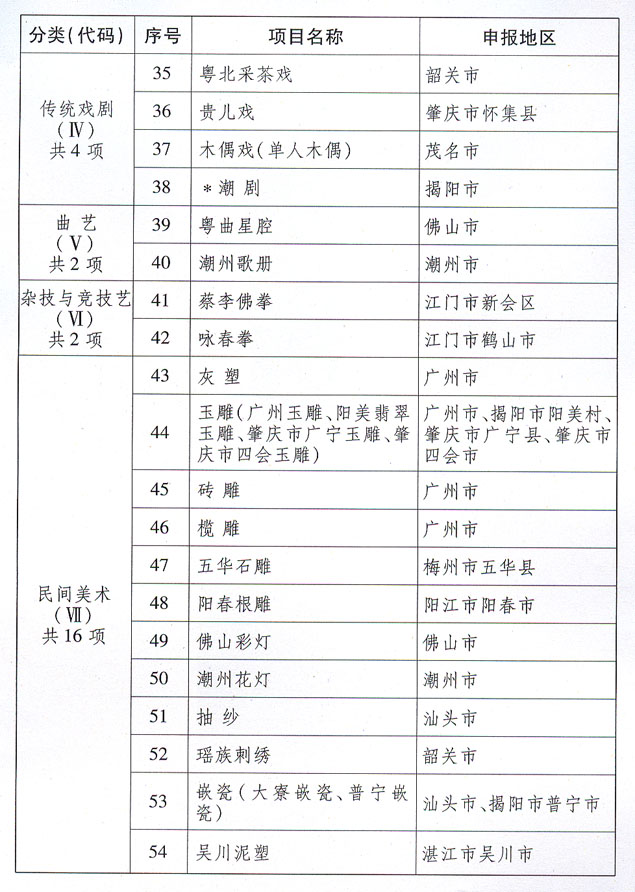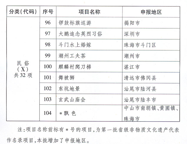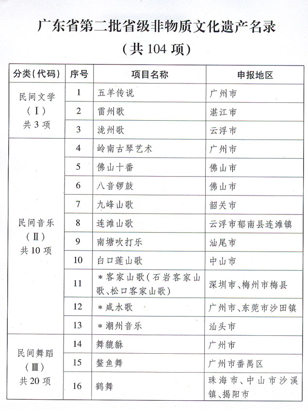 關于批準并公布廣東省第二批省級非物質 文化遺產名錄的通知