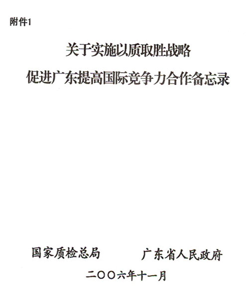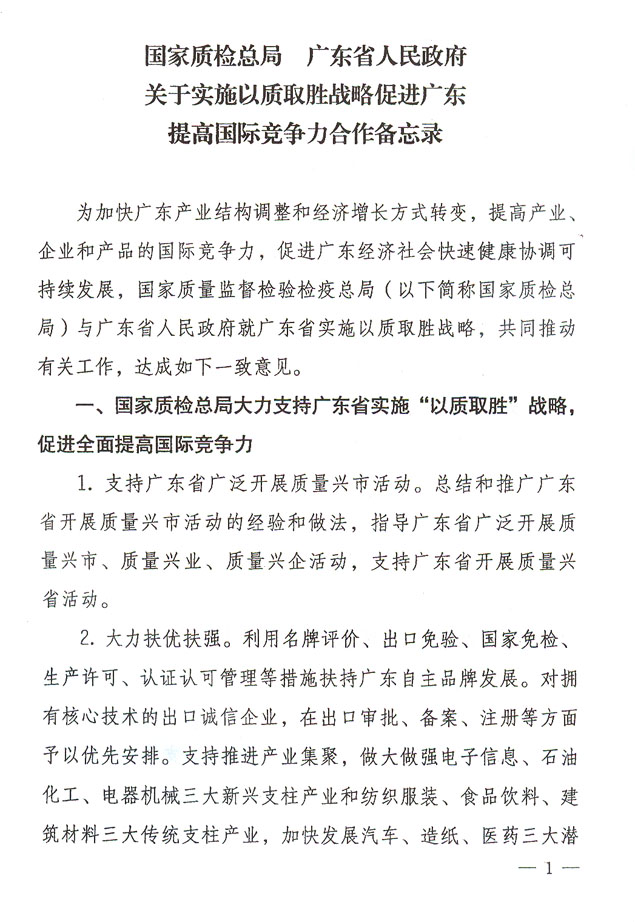 關于貫徹落實國家質檢總局廣東省人民政府關于實施以質取勝戰略促進廣東提高國際競爭力合作備忘錄的通知