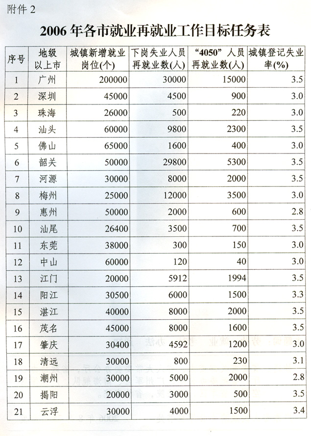 2.2006年各市就業再就業工作目標任務表主題詞:勞動就業考核辦法通知
