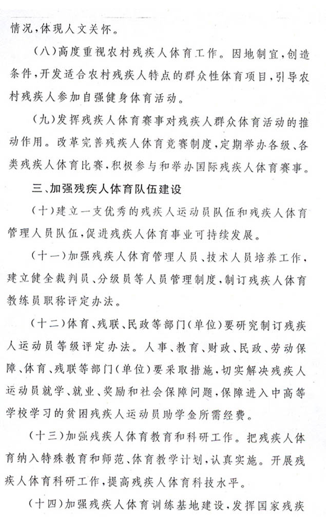 殘疾人體育工作意見的通知
