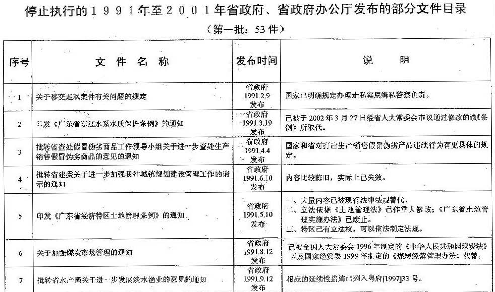 | 關于停止執行1991年至2001年省政府、 |