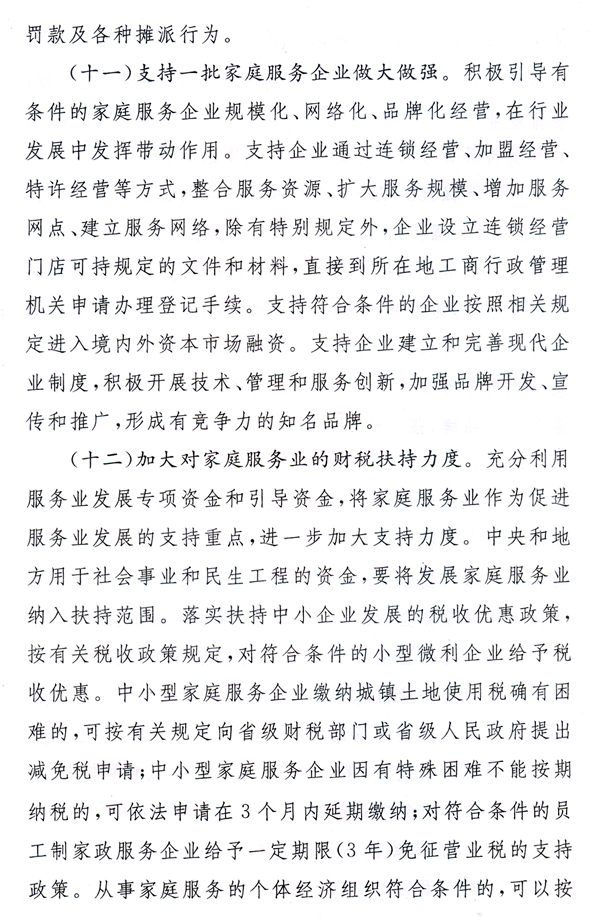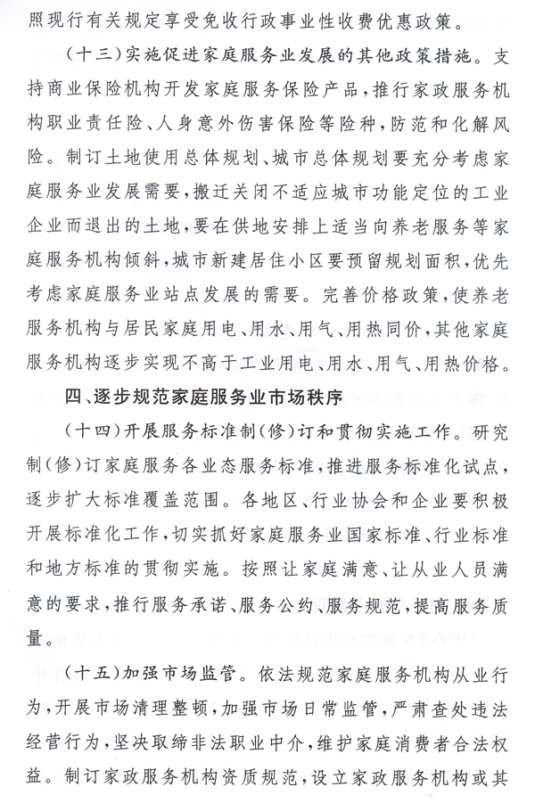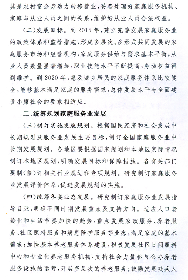 大力發(fā)展家庭服務(wù)業(yè),加快市場化、產(chǎn)業(yè)化和社會化,形成惠及城鄉(xiāng)居民的比較健全的家庭服務(wù)體系,有利于擴大內(nèi)需、增加就業(yè)、改善民生,對于提高人民生活質(zhì)量、促進社會和諧、全面建設(shè)小康社會具有重要作用。各地、各有關(guān)部門要高度重視,按照國辦發(fā)〔2010〕43號文提出的要求,完善和落實各項政策措施,大力推動家庭服務(wù)業(yè)健康發(fā)展。省人力資源社會保障廳要會同有關(guān)部門,抓緊研究制訂我省“十二五”時期家庭服務(wù)業(yè)發(fā)展規(guī)劃,起草貫徹落實國辦發(fā)〔2010〕43號文的具體實施意見,報省政府批準(zhǔn)后組織實施。各地要在摸清本地區(qū)家庭服務(wù)業(yè)發(fā)展現(xiàn)狀的基礎(chǔ)上,結(jié)合實際制訂出臺扶持家庭服務(wù)業(yè)發(fā)展的配套政策措施。