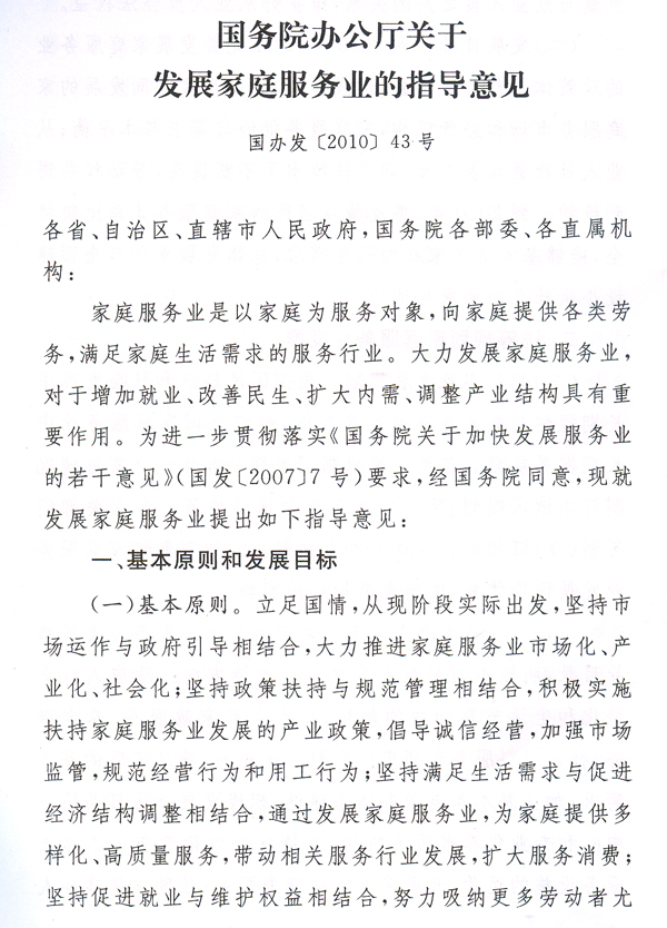 現(xiàn)將《國務(wù)院辦公廳關(guān)于發(fā)展家庭服務(wù)業(yè)的指導(dǎo)意見》(國辦發(fā)〔2010〕43號)轉(zhuǎn)發(fā)給你們,經(jīng)省人民政府同意,結(jié)合我省實際提出如下意見,請一并貫徹執(zhí)行。