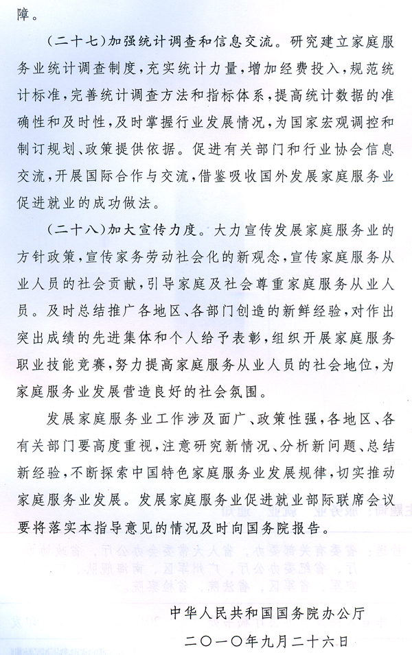轉(zhuǎn)發(fā)國務(wù)院辦公廳關(guān)于發(fā)展家庭服務(wù)業(yè)