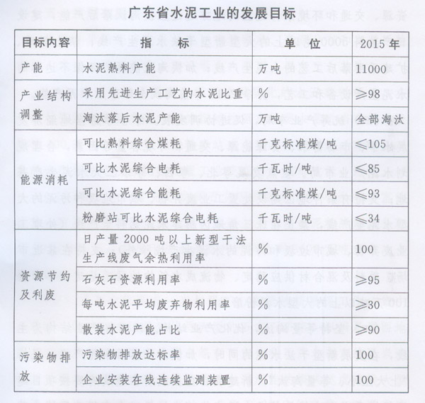 根據我省水泥工業的基本情況、發展環境及需求預測,確定2015年全省水泥工業的發展目標如下: