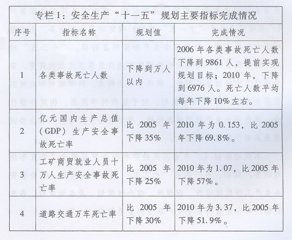 2.安全生產(chǎn)體制機制建設取得明顯成效。修訂和出臺了《廣東省安全生產(chǎn)條例》、《廣東省建設項目安全設施監(jiān)督管理辦法》(省政府令第147號)等一批地方性法規(guī)和規(guī)章;完成了全省市、縣兩級安全監(jiān)管機構的設置,省、市、縣三級安全生產(chǎn)監(jiān)管機構安全監(jiān)管人員由1200人增加到3337人;全省1618個鄉(xiāng)鎮(zhèn)(街道)中有95%成立了安全生產(chǎn)監(jiān)管機構,共有專職或兼職安全監(jiān)管人員8000多人;建立健全了安全生產(chǎn)責任考核制度,建立了覆蓋全省的安全生產(chǎn)控制指標管理體系;完善了防范重特大事故工作會議制度和安全生產(chǎn)行政許可、檢查督查、聯(lián)合執(zhí)法、事故責任追究等制度。 3.重點行業(yè)(領域)監(jiān)管得到強化。實現(xiàn)了煤礦和煙花爆竹生產(chǎn)行業(yè)的市場退出;礦山、危險化學品和煙花爆竹的安全監(jiān)管逐步走上制度化、規(guī)范化軌道;道路交通、消防(火災)、建筑施工、民用爆炸物品、特種設備、鐵路運輸、水上交通、農(nóng)業(yè)機械、漁業(yè)船舶等重點行業(yè)(領域)的安全監(jiān)管工作得到進一步加強;建立健全了省、市、縣三級重大危險源動態(tài)監(jiān)管及監(jiān)控預警體系;企業(yè)安全生產(chǎn)標準化建設全面推進。 4.執(zhí)法監(jiān)察體系全面構建。省、市、縣三級安全生產(chǎn)執(zhí)法監(jiān)察機構全部組建,共有執(zhí)法監(jiān)察人員1486人;委托鄉(xiāng)鎮(zhèn)(街道)執(zhí)法工作全面鋪開,已實施委托執(zhí)法的鄉(xiāng)鎮(zhèn)(街道)占全省鄉(xiāng)鎮(zhèn)(街道)總數(shù)的96.3%;全省共投入執(zhí)法監(jiān)察裝備建設資金9727萬元,為縣級以上執(zhí)法監(jiān)察機構配備了基本的專用執(zhí)法監(jiān)察裝備。 5.技術支撐能力明顯提高。依托高等院校、科研單位和重點企業(yè)等社會優(yōu)質資源,搭建了安全科技“政、產(chǎn)、學、研”一體化平臺;初步建成礦山安全、非礦山和重大危險源監(jiān)控、職業(yè)危害檢測與鑒定等3個省級中心實驗室;全面實施“金安工程”,構建了省、市兩級信息網(wǎng)絡平臺;組建了省級安全生產(chǎn)專家組;充分發(fā)揮了安全生產(chǎn)專業(yè)服務機構的作用。 6.安全生產(chǎn)宣傳教育培訓卓有成效。重視安全生產(chǎn)宣傳教育培訓機構建設,鼓勵支持全省有條件的高校和中職學校開展安全教育,全省各類安全培訓受訓人員累計達300多萬人次;以“安全生產(chǎn)月”、“粵港澳安全知識競賽”等活動為載體的宣傳教育深入開展,全民安全意識得到進一步提高。 7.應急救援體系建設實現(xiàn)重大突破。成立了省、市、縣三級安全生產(chǎn)應急管理機構,安全生產(chǎn)應急預案體系基本形成;加強了礦山、危險化學品、消防、建筑施工、特種設備、民航、電力、海上救助等重點行業(yè)(領域)專兼職應急救援隊伍建設;省、市兩級及省專業(yè)部門互聯(lián)互通的安全生產(chǎn)應急指揮平臺網(wǎng)絡初步形成。 (二)發(fā)展環(huán)境。 “十二五”時期,我省安全生產(chǎn)工作既面臨著許多機遇和有利條件,也面臨著不少挑戰(zhàn)和制約因素。 1.發(fā)展機遇。 一是黨中央、國務院高度重視安全生產(chǎn),把安全生產(chǎn)工作擺在更加重要的戰(zhàn)略位置。全省各級黨委、政府圍繞貫徹實施《珠江三角洲地區(qū)改革發(fā)展規(guī)劃綱要(2008-2020年)》和“加快轉型升級、建設幸福廣東”的中心任務,牢固樹立“安全發(fā)展”的理念,更加重視處理好保障安全、促進發(fā)展、提高效益之間的關系,不斷強化安全監(jiān)管,切實督促企業(yè)落實安全生產(chǎn)主體責任,為加強安全生產(chǎn)工作提供了有力的保障。 二是我省綜合經(jīng)濟實力不斷增強,經(jīng)濟發(fā)展方式轉變不斷加快,科技自主創(chuàng)新能力不斷增強,經(jīng)濟結構調整不斷深入,為解決深層次、結構性、區(qū)域性的安全生產(chǎn)問題創(chuàng)造了有利條件。 三是全省安全生產(chǎn)法制建設進一步加強,體制機制進一步完善,安全生產(chǎn)監(jiān)管監(jiān)察手段進一步豐富,生產(chǎn)經(jīng)營單位安全生產(chǎn)主體責任進一步落實,全民安全意識進一步增強,為做好“十二五”時期安全生產(chǎn)工作奠定了良好的基礎。 2.面臨的挑戰(zhàn)。 一是安全生產(chǎn)形勢依然嚴峻。我省生產(chǎn)安全事故總量和各類事故死亡人數(shù)仍居全國第一,道路交通事故死亡人數(shù)所占比重大,火災事故死亡人數(shù)較多,較大事故多發(fā),職業(yè)危害較嚴重。 二是安全生產(chǎn)基礎依然薄弱。我省產(chǎn)業(yè)層次總體偏低、增長方式仍較粗放等影響制約安全生產(chǎn)的深層次問題尚未得到根本解決。交通、能源、土地等資源和環(huán)境承載能力的剛性約束日趨明顯,安全生產(chǎn)保障的難度日益加大。人員密集場所、重大危險源數(shù)量眾多,事故隱患治理任務艱巨。企業(yè)安全生產(chǎn)責任主體意識不強,從業(yè)人員安全生產(chǎn)技能與自我防護意識總體不高,部分企業(yè)工藝技術落后,設備老化陳舊,安全管理水平偏低。 三是安全保障能力依然不強。基層安全監(jiān)管監(jiān)察執(zhí)法機構基礎設施建設滯后,裝備配備不足。安全生產(chǎn)技術支撐能力欠缺,成果轉