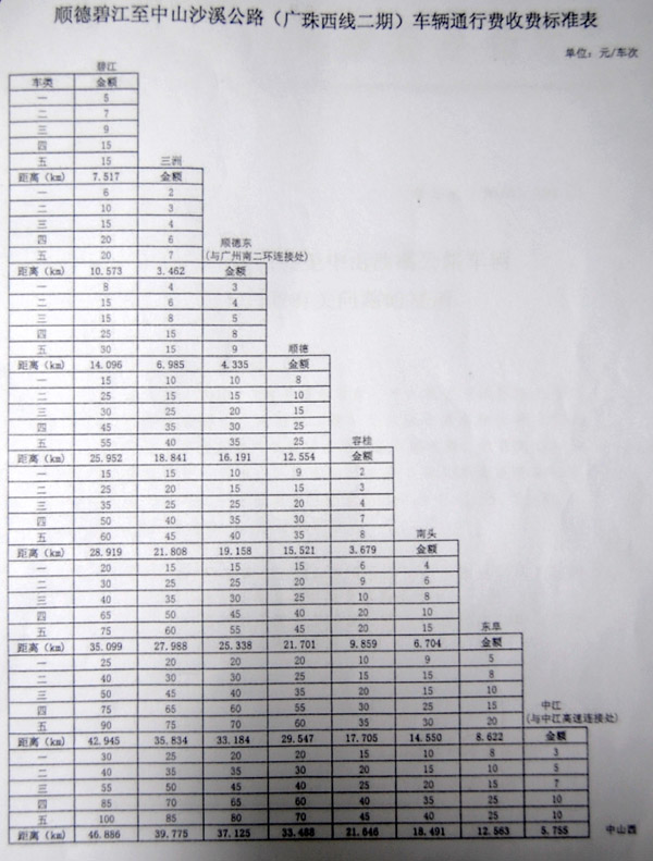 ? 關(guān)于順德碧江至中山沙溪公路車輛 通行費(fèi)有關(guān)問題的復(fù)函
