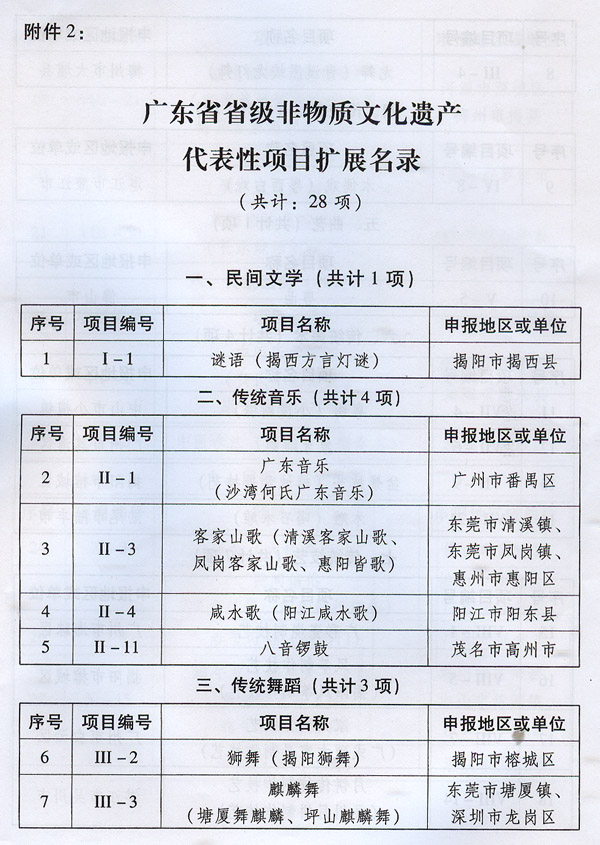 2.廣東省省級非物質文化遺產代表性項目擴展名錄 ? ? ? ? 廣東省人民政府 2013年11月22日 ? ? ?