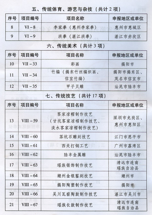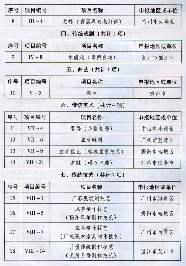 ? ? 廣東省人民政府關于批準并公布廣東省 第五批省級非物質文化遺產名錄的通知
