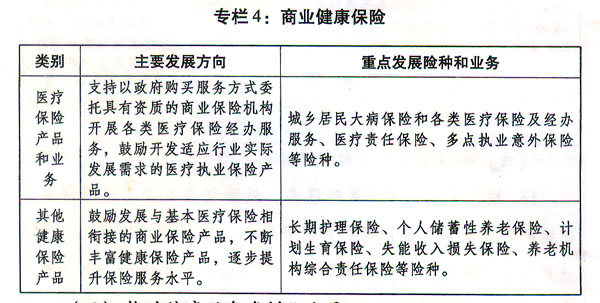 (四)積極發(fā)展商業(yè)健康保險(xiǎn)。 13.推廣多樣化健康保險(xiǎn)服務(wù)。鼓勵(lì)發(fā)展與基本醫(yī)療保險(xiǎn)相銜接的商業(yè)健康保險(xiǎn)產(chǎn)品;鼓勵(lì)開發(fā)商業(yè)性長(zhǎng)期護(hù)理保險(xiǎn)、個(gè)人儲(chǔ)蓄性養(yǎng)老保險(xiǎn)、計(jì)劃生育保險(xiǎn)、失能收入損失保險(xiǎn)、養(yǎng)老機(jī)構(gòu)綜合責(zé)任保險(xiǎn)等服務(wù)產(chǎn)品和醫(yī)療責(zé)任保險(xiǎn)、多點(diǎn)執(zhí)業(yè)意外保險(xiǎn)等執(zhí)業(yè)保險(xiǎn)產(chǎn)品。支持商業(yè)保險(xiǎn)機(jī)構(gòu)承辦城鄉(xiāng)居民大病保險(xiǎn),完善推進(jìn)城鄉(xiāng)居民大病保險(xiǎn)政策。研究并適時(shí)出臺(tái)我省住房反向抵押養(yǎng)老保險(xiǎn)試行政策。有條件的地區(qū),可以按照職工自愿原則,允許使用個(gè)人社保賬戶一定比例余額購(gòu)買補(bǔ)充醫(yī)療保險(xiǎn)。(廣東保監(jiān)局、省人力資源社會(huì)保障廳負(fù)責(zé),省金融辦、衛(wèi)生計(jì)生委、中醫(yī)藥局參與)