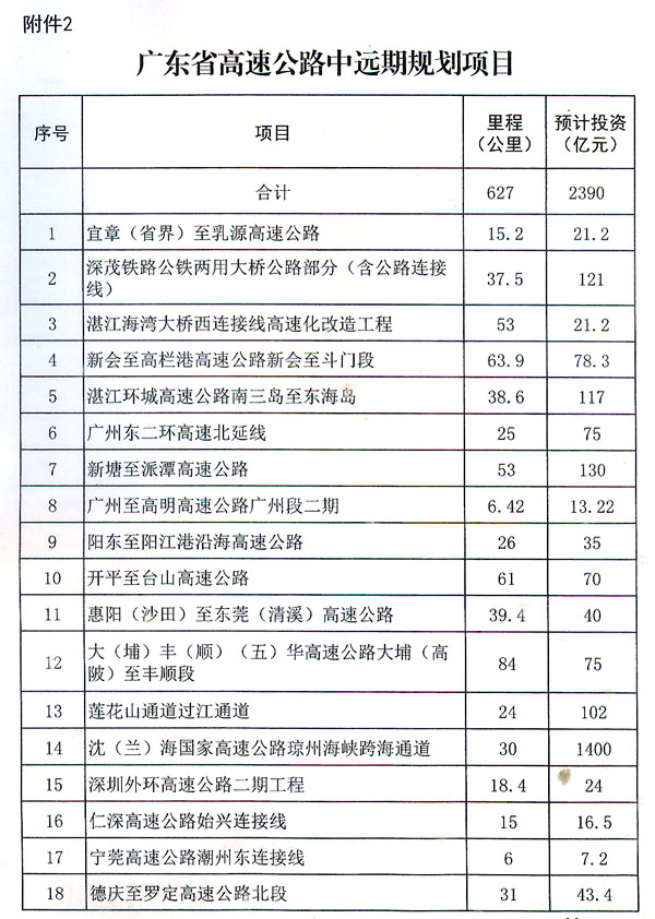 ? 廣東省人民政府辦公廳關于印發廣東省高速公路 2015年至2017年建設計劃及 中遠期規劃的通知