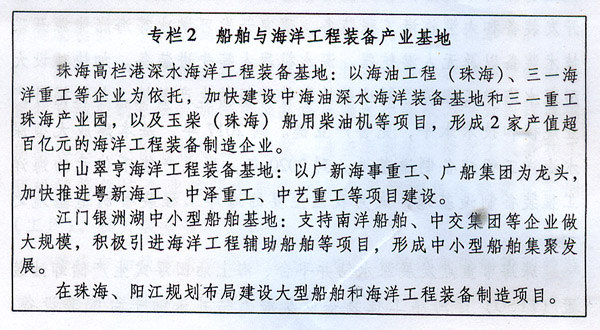 江門市重點發展適應基礎設施建設需要的特種工程船和具有特色優勢的品牌化中小型船舶產品,以及以分段制造為主的船舶配套產業鏈。大廣海灣地區擇機差異化發展石油鉆采專用設備等深水海洋工程裝備。