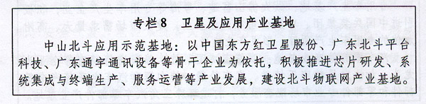 以中山市為主,重點發展衛星通信、衛星導航、衛星遙感三大領域,不斷推進應用概念和應用模式創新,積極拓展衛星在應急、救災、氣象監測、通用航空、智能交通、物聯網等應用領域,著力發展衛星導航終端及位置服務、衛星通信廣播、自主遙感信息等衛星應用產業鏈,培育開發北斗衛星空間基準授時、高分辨率高光譜遙感圖像處理及應用和空間信息三維顯示等技術和裝備。到2017年,培育形成10家以上銷售額超億元的衛星應用企業,初步建立區域衛星應用產業體系。
