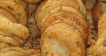 油罩糍起名是由于其制作方法,用一個叫油罩的工具,盛上米漿再放入油鍋里煎出來的,故得油罩糍。