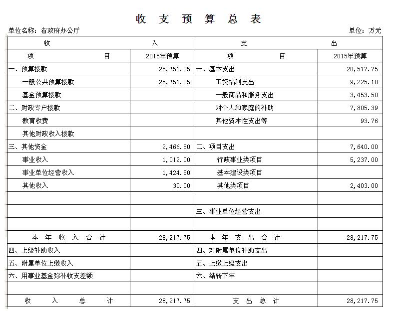 2015年收入預算28,217.75萬元,其中:公共預算撥款25,751.25萬元,事業(yè)收入1,012.00萬元,事業(yè)單位經營收入1,424.50萬元,其他收入30.00萬元。
