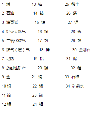 國務院地質礦產主管部門審批發證礦種目錄