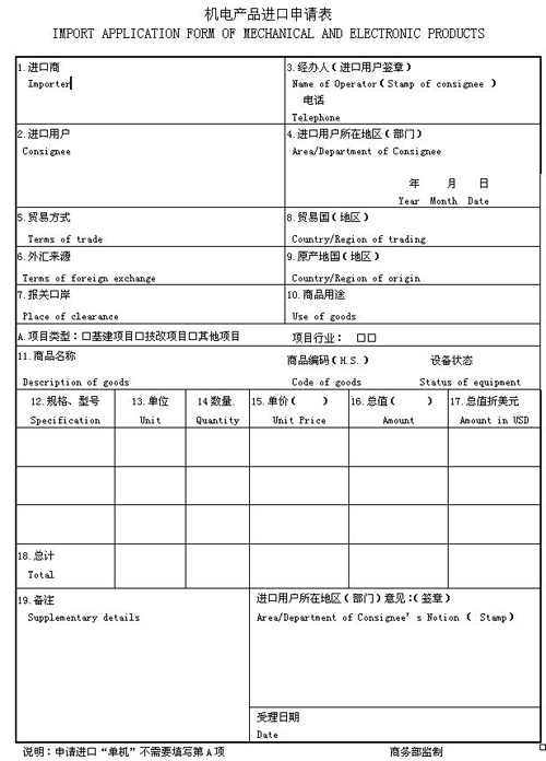 (一)進口列入《進口自動許可機電產品目錄》的產品,進口單位應當向商務部或地方、部門機電辦申請辦理進口自動許可手續。