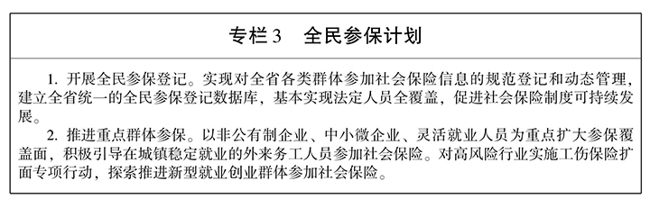 堅(jiān)持全覆蓋、保基本、多層次、可持續(xù)的方針,以推進(jìn)養(yǎng)老、醫(yī)療保險(xiǎn)城鄉(xiāng)一體化為重點(diǎn),構(gòu)建法定人員全覆蓋、保障待遇水平適度、基金運(yùn)行安全穩(wěn)定、管理服務(wù)高效便捷、權(quán)益更加均衡的社會保障網(wǎng)。 第一節(jié) 實(shí)現(xiàn)社會保險(xiǎn)法定人員全覆蓋