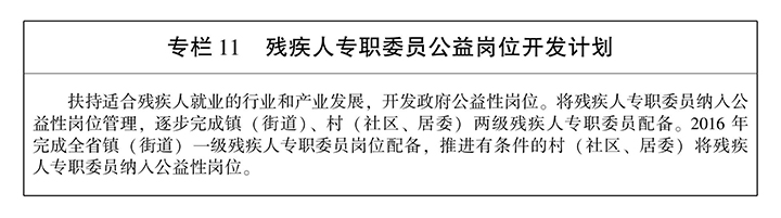 探索殘疾人就業(yè)新模式,拓寬就業(yè)渠道。完善按比例就業(yè)政策,建立健全就業(yè)公示和獎勵機(jī)制,落實(shí)就業(yè)崗位補(bǔ)貼,建立用人單位無障礙環(huán)境建設(shè)補(bǔ)貼制度,促進(jìn)殘疾人在各類用人單位按比例就業(yè)。實(shí)施促進(jìn)殘疾人就業(yè)援助計(jì)劃,加大就業(yè)援助力度。扶持適合殘疾人就業(yè)的行業(yè)和產(chǎn)業(yè)發(fā)展,開發(fā)政府公益性崗位,推動殘疾人穩(wěn)定集中就業(yè)。建立完善殘疾人就業(yè)創(chuàng)業(yè)補(bǔ)貼制度,健全殘疾人創(chuàng)業(yè)孵化機(jī)制,落實(shí)職業(yè)介紹補(bǔ)貼、職業(yè)培訓(xùn)補(bǔ)貼、社會保險(xiǎn)補(bǔ)貼、崗位補(bǔ)貼、創(chuàng)業(yè)培訓(xùn)補(bǔ)貼、創(chuàng)業(yè)資助等優(yōu)惠政策。建立完善殘疾人輔助性就業(yè)制度,幫助智力、精神等就業(yè)困難殘疾人實(shí)現(xiàn)社區(qū)就業(yè),在生產(chǎn)生活以及社會保險(xiǎn)等方面給予輔助性就業(yè)機(jī)構(gòu)中的殘疾人更多資助。以就業(yè)為導(dǎo)向,鼓勵各類特殊教育學(xué)校、職業(yè)教育學(xué)校及其他培訓(xùn)機(jī)構(gòu)開展多層次殘疾人職業(yè)教育培訓(xùn),加強(qiáng)訂單式培訓(xùn)、定向培訓(xùn)、定崗培訓(xùn),幫助殘疾人持續(xù)提升職業(yè)技能。建立殘疾人就業(yè)服務(wù)檔案,全方位跟蹤各項(xiàng)政策落實(shí)。