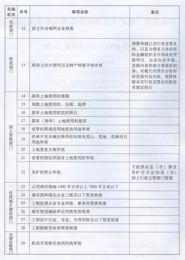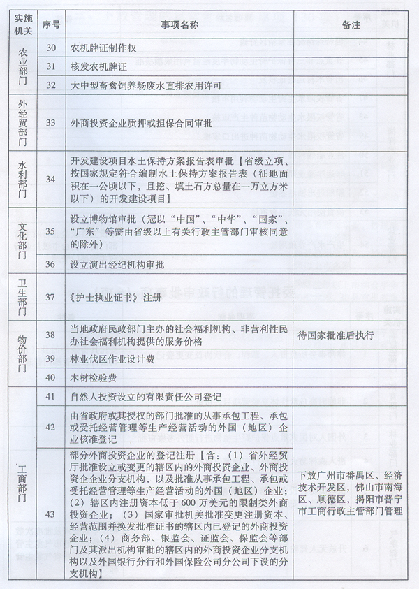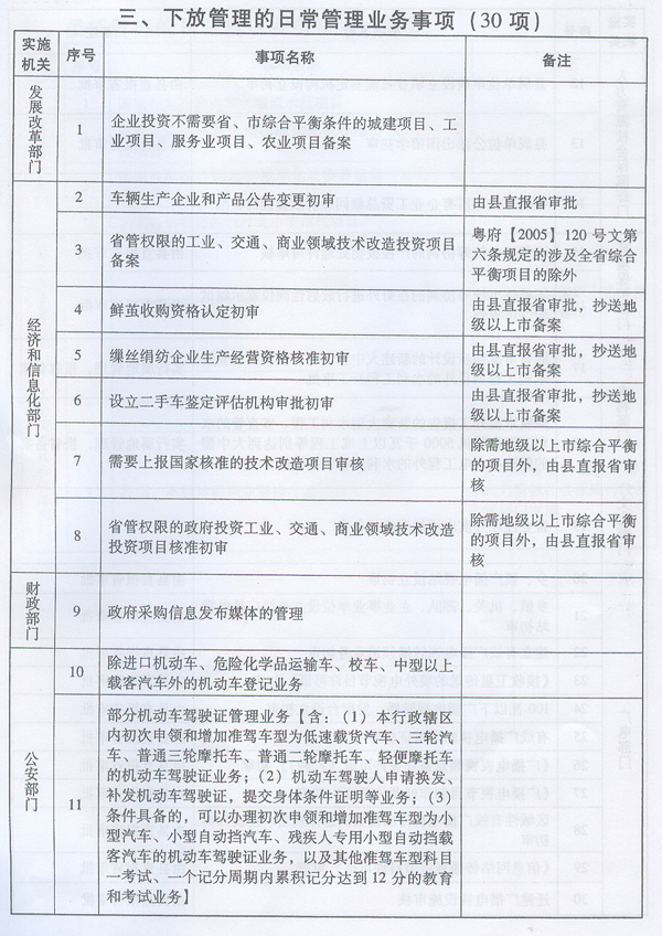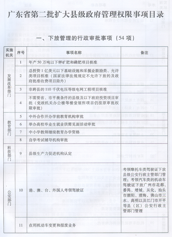 廣東省第二批擴大縣級政府管理權限事項目錄